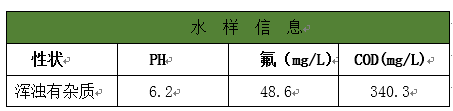 本公司是家大型的化肥化工企業(yè)集團(tuán),主要生產(chǎn)尿素、硝酸銨、甲醇、稀硝酸等,其污水主要為煤制氣后產(chǎn)生的含氟廢水,現(xiàn)對(duì)該廢水進(jìn)行處理。